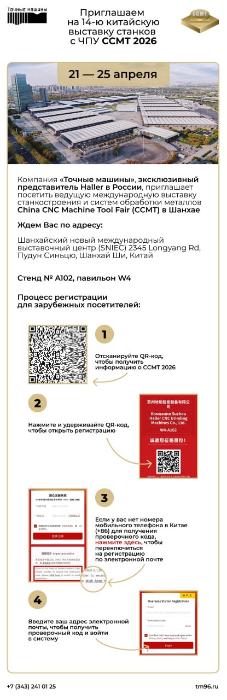Компания «Точные машины», эксклюзивный представитель заточного оборудования «Haller» в России, приглашает посетить Китайскую международную выставку станков «CСMT 2026». Это крупнейшая в Азии профессиональная выставка, посвященная станкам с ЧПУ, современному оборудованию, инструментам и передовым технологиям для промышленности.
