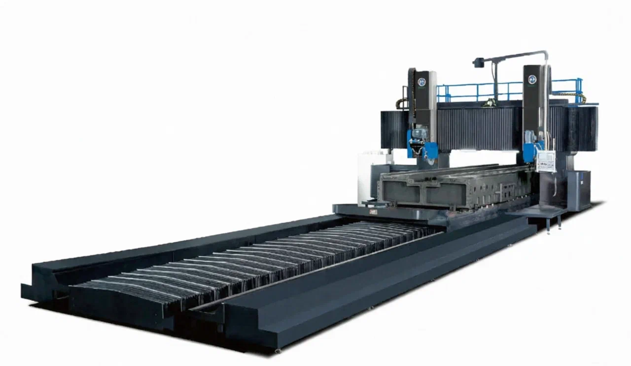 Станок ориентирована на обработку крупногабаритных деталей и оснащена рабочим столом размером 6500*2500 мм с Т-образными пазами 36 мм, рассчитанным на равномерную нагрузку до 20 000 кг. Скорость продольного перемещения стола составляет 5-25 м/мин при расстоянии между колоннами 3250 мм. Горизонтальная шлифовальная головка приводится двигателем мощностью 30 кВт (1450 об/мин) с ходом ползуна 1000 мм и использует шлифовальный круг Ø600*150 мм. Вертикальная головка оснащена двигателем 11/15 кВт с диапазоном оборотов 0-2500 об/мин, ходом 1000 мм, углом поворота 90 и работает с кругом Ø405*50 мм. Поперечное перемещение и вертикальный подъем осуществляются со скоростью до 4000 и 3000 мм/мин соответственно. Габариты станка составляют 16500*6000*4500 мм при общей массе 90 тонн, что делает его надежным решением для тяжелого машиностроения, производства прецизионных направляющих и обработки массивных корпусных деталей. Производитель также предусматривает возможность индивидуальной адаптации станка под специфические технологические требования заказчика.